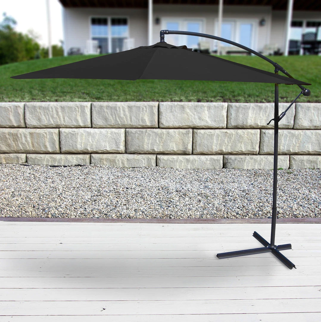 Enjoy time outdoors out of the sun with our attractive and colorful 10 foot steel offset umbrella. Made with Spun polyester fabric to prolong the life of your outdoor umbrella. Engineered to Resist Fading, Mildew & Stains. Item must be secured by umbrella base, with stone pavers, or bolted to a deck or patio. Recommend using 4 of the offset umbrella bases.