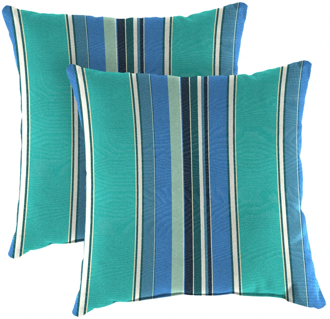 Add a touch of color to your outdoor seating area with this set of 2 Outdoor Throw Pillows from Jordan Manufacturing. Crafted from a quick-drying, UV- and water-resistant fabric, these outdoor pillows withstand sun exposure and the elements to last for the seasons to come. Stuffed with hypoallergenic polyester fiber fill for an extra cushy and soft experience while relaxing. From elaborate dining spaces to cozy three-season porches, these fiber-filled throw pillows boosts your space with carefree, laid-back style and total comfort.