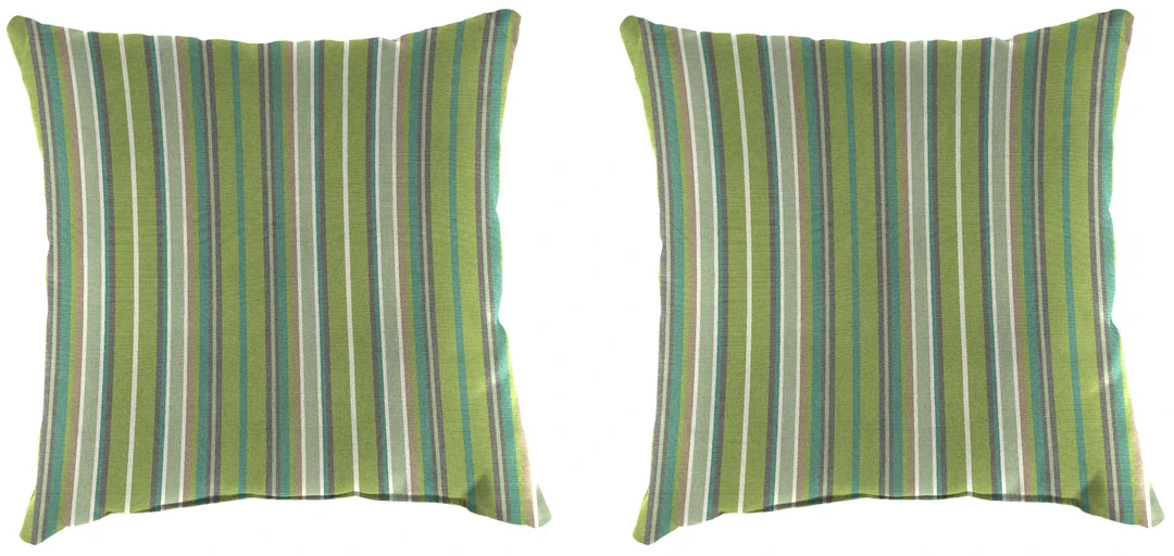 Outdoor Knife Edge 18″ Throw Pillows; Sold in Sets of 2; UV protection allows pillow to withstand up to 1000 hours of direct sunlight; Filled with dense hypoallergenic spun polyester fiber; Weather resistant Sunbrella acrylic fabric that is engineered to withstand mold, mildew, & stains; Overall dimensions: 18Wx18Lx5H