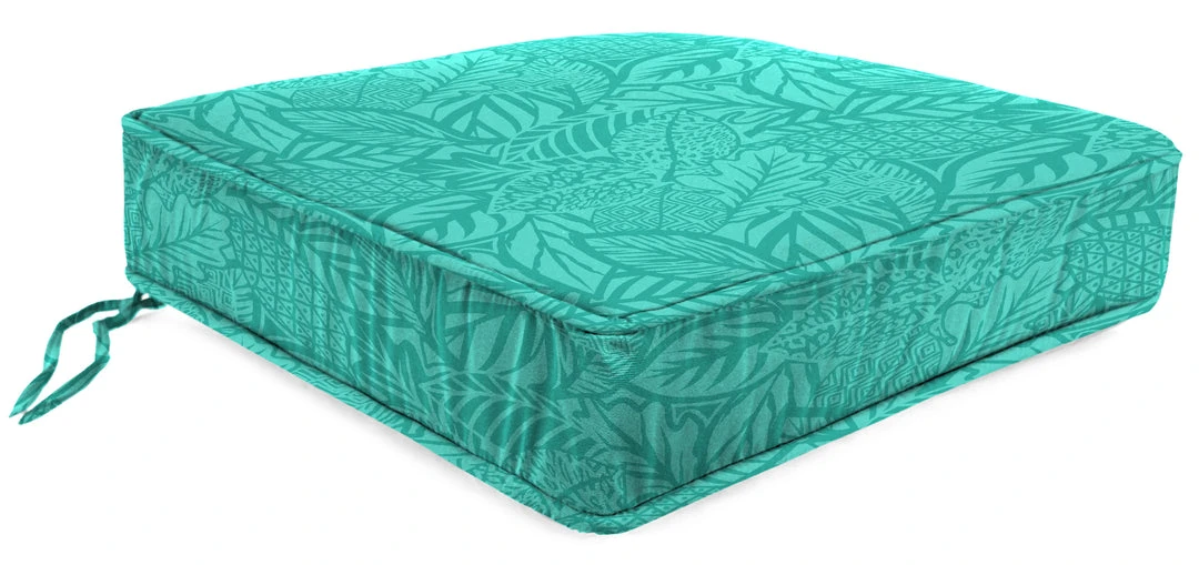 Outdoor Boxed Edge Deep Seat Cushion; UV protection allows cushion to withstand up to 500 hours of direct sunlight; Seat is filled with dense hypoallergenic polyester fiber; Made from weather-resistant polyester fabric that is engineered to withstand mold, mildew, & stains; Overall dimensions: 22.5Wx21.5Lx4H; Matching ties for a secure fit