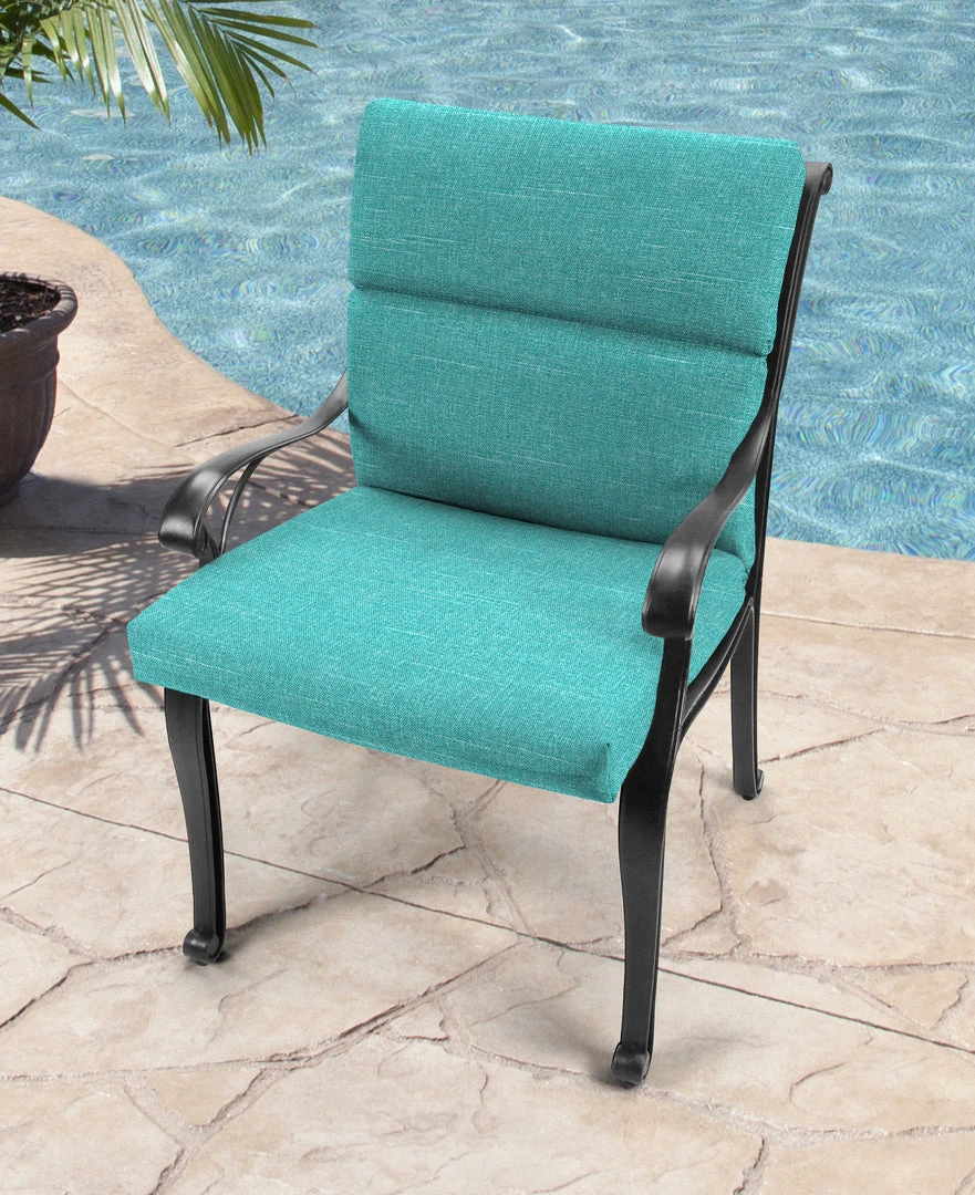 Bring additional style and comfort to your patio decor with our Outdoor French edge dining chair cushion from Jordan Manufacturing. This classic piece can be used to brighten up any outdoor seating area for the utmost comfort. Its larger size serves as a casual seat when the guest list suddenly grows. 100% polyester material makes for a high-performance fabric with its weather-, fade- and water-resistant qualities, making for the perfect piece to put outdoors. From elaborate dining spaces to cozy three-season porches, this fiber-filled cushion boosts your space with carefree, laid-back style and total comfort.