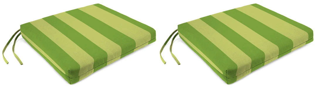 Bring optimal comfort to your patio chairs with the French Edge Seat Cushion from Jordan. Sold in sets of 2, these cushions are made with weather-, water-, fade- and UV-resistant fabric for ultimate durability and long-lasting use. They are stuffed with hypoallergenic polyester fiber fill for an extra cushy and soft experience while relaxing. Ties along the sides add convenience while ensuring the cushions stay in place when you’re sitting down. From elaborate dining spaces to cozy three-season porches, these fiber-filled cushions boosts your space with carefree, laid-back style and total comfort.