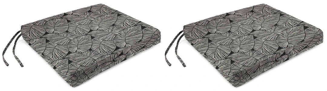 Bring optimal comfort to your patio chairs with the French Edge Seat Cushion from Jordan. Sold in sets of 2, these cushions are made with weather-, water-, fade- and UV-resistant fabric for ultimate durability and long-lasting use. They are stuffed with hypoallergenic polyester fiber fill for an extra cushy and soft experience while relaxing. Ties along the sides add convenience while ensuring the cushions stay in place when you’re sitting down. From elaborate dining spaces to cozy three-season porches, these fiber-filled cushions boosts your space with carefree, laid-back style and total comfort.