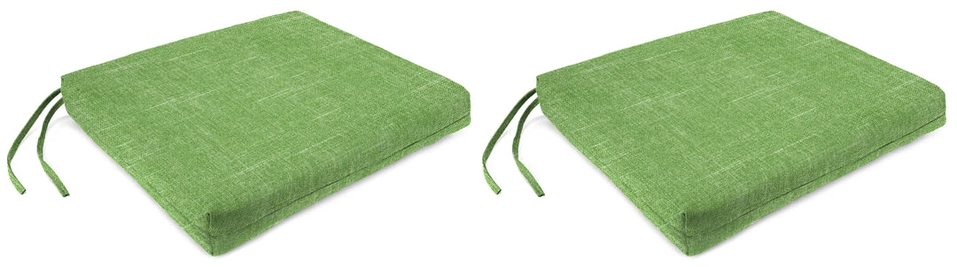 Bring optimal comfort to your patio chairs with the French Edge Seat Cushion from Jordan. Sold in sets of 2, these cushions are made with weather-, water-, fade- and UV-resistant fabric for ultimate durability and long-lasting use. They are stuffed with hypoallergenic polyester fiber fill for an extra cushy and soft experience while relaxing. Ties along the sides add convenience while ensuring the cushions stay in place when you’re sitting down. From elaborate dining spaces to cozy three-season porches, these fiber-filled cushions boosts your space with carefree, laid-back style and total comfort.
