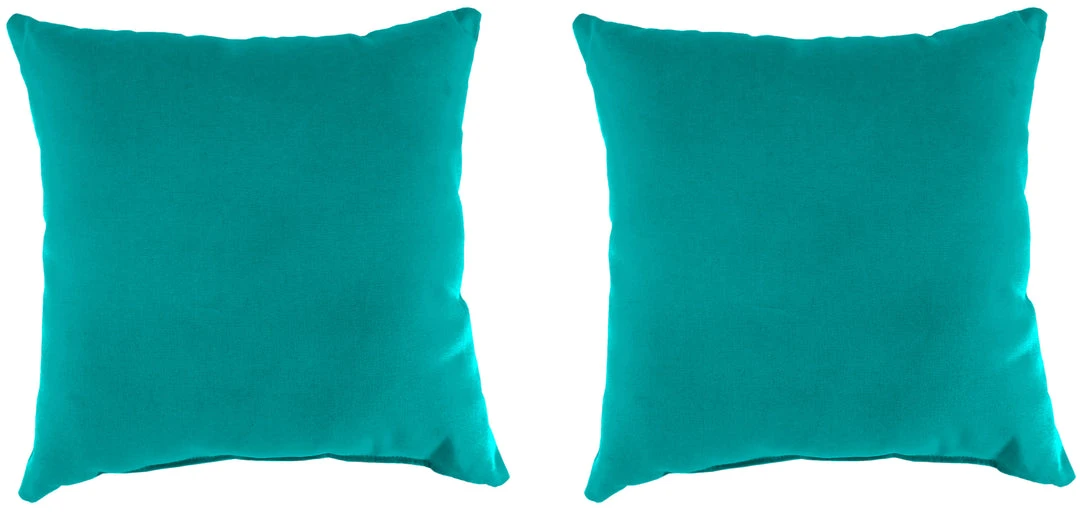 Outdoor Knife Edge 18″ Throw Pillows; Sold in Sets of 2; UV protection allows pillow to withstand up to 1000 hours of direct sunlight; Filled with dense hypoallergenic spun polyester fiber; Weather resistant Sunbrella acrylic fabric that is engineered to withstand mold, mildew, & stains; Overall dimensions: 18Wx18Lx5H