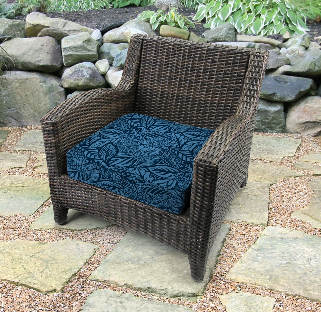 Refresh your outdoor seating arrangement with the comfort and style of this Boxed Edge Outdoor Deep Seat Cushion from Jordan Manufacturing. Covered with a soft fabric and filled with high-density fiber material, the deep-seat cushion is specially designed to keep you lounging comfortably on your favorite patio chair. Crafted from fade-, UV-, water- and stain-resistant fabric to withstand the elements and maintain the quality of your cushions over time Bringing a stylish look to help enhance your patio, deck, or pool area.