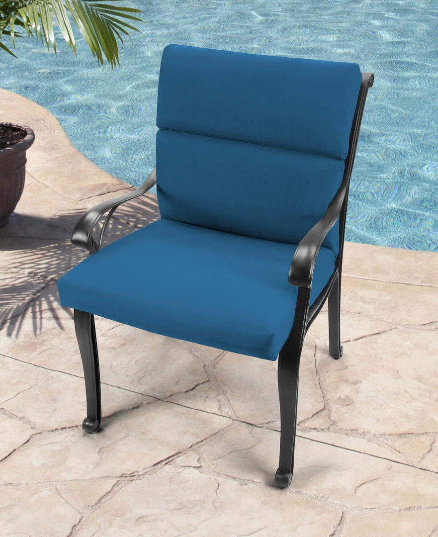 Bring additional style and comfort to your patio decor with our Outdoor French edge dining chair cushion from Jordan Manufacturing. This classic piece can be used to brighten up any outdoor seating area for the utmost comfort. Its larger size serves as a casual seat when the guest list suddenly grows. Sunbrella acrylic material makes for a high-performance fabric with its weather-, fade- and water-resistant qualities, making for the perfect piece to put outdoors. From elaborate dining spaces to cozy three-season porches, this fiber-filled cushion boosts your space with carefree, laid-back style and total comfort.