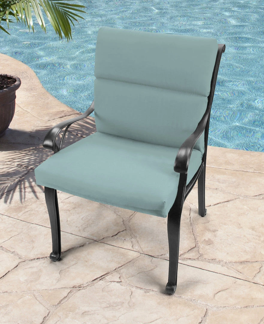 Bring additional style and comfort to your patio decor with our Outdoor French edge dining chair cushion from Jordan Manufacturing. This classic piece can be used to brighten up any outdoor seating area for the utmost comfort. Its larger size serves as a casual seat when the guest list suddenly grows. Sunbrella acrylic material makes for a high-performance fabric with its weather-, fade- and water-resistant qualities, making for the perfect piece to put outdoors. From elaborate dining spaces to cozy three-season porches, this fiber-filled cushion boosts your space with carefree, laid-back style and total comfort.