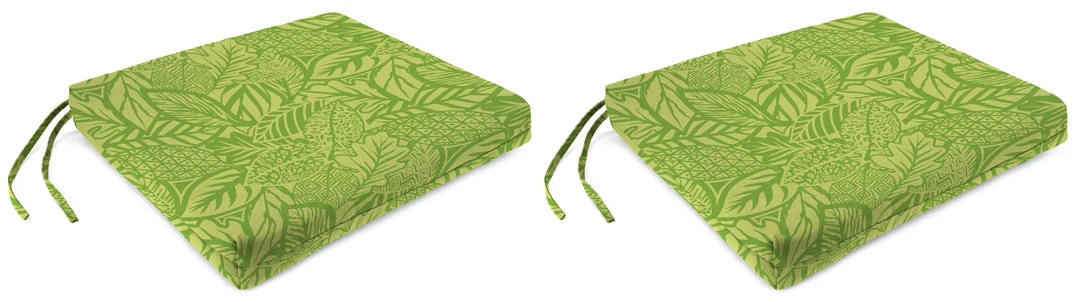 Bring optimal comfort to your patio chairs with the French Edge Seat Cushion from Jordan. Sold in sets of 2, these cushions are made with weather-, water-, fade- and UV-resistant fabric for ultimate durability and long-lasting use. They are stuffed with hypoallergenic polyester fiber fill for an extra cushy and soft experience while relaxing. Ties along the sides add convenience while ensuring the cushions stay in place when you’re sitting down. From elaborate dining spaces to cozy three-season porches, these fiber-filled cushions boosts your space with carefree, laid-back style and total comfort.