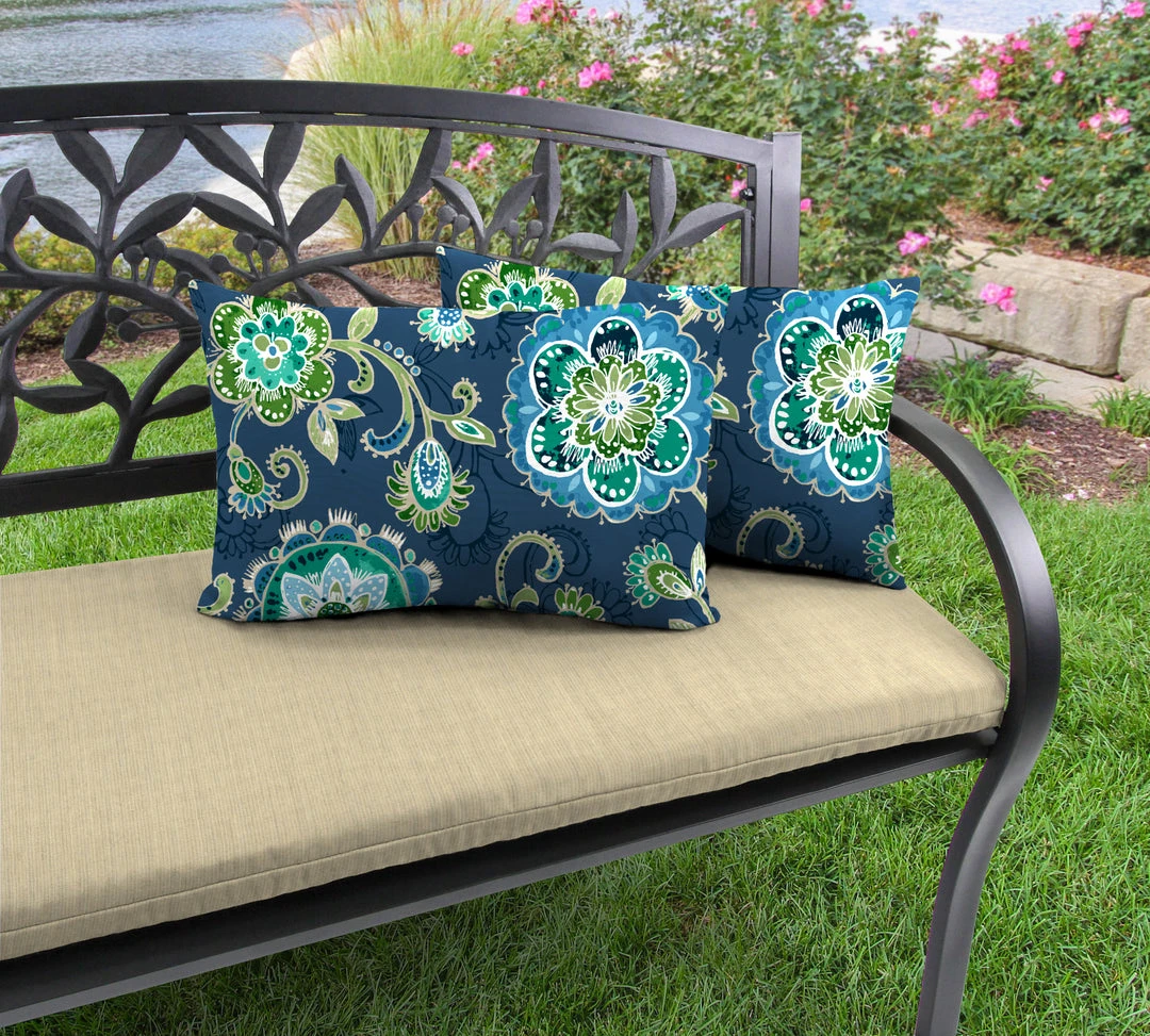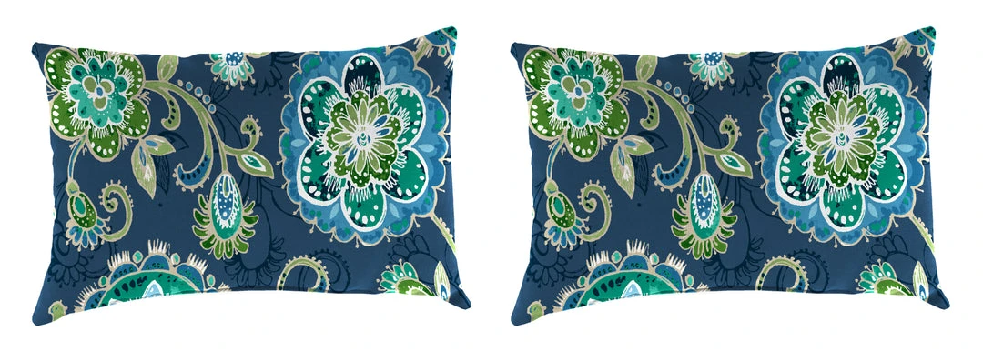 Add a touch of color to your outdoor seating area with this set of 2 Outdoor Lumbar Throw Pillows from Jordan Manufacturing. Crafted from a quick-drying, UV- and water-resistant fabric, these outdoor pillows withstand sun exposure and the elements to last for the seasons to come. Stuffed with hypoallergenic polyester fiber fill for an extra cushy and soft experience while relaxing. From elaborate dining spaces to cozy three-season porches, these fiber-filled throw pillows boosts your space with carefree, laid-back style and total comfort.