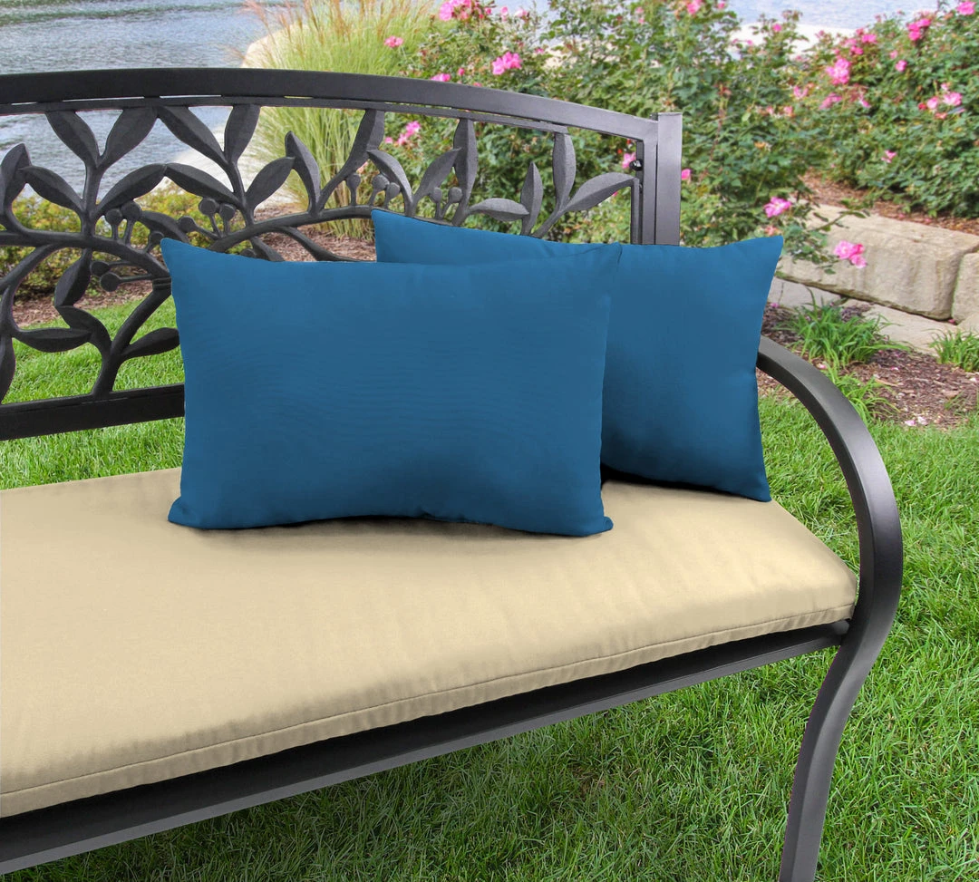 Add a touch of color to your outdoor seating area with this set of 2 Outdoor Lumbar Throw Pillows from Jordan Manufacturing. Crafted from a quick-drying, UV- and water-resistant fabric, these outdoor pillows withstand sun exposure and the elements to last for the seasons to come. Stuffed with hypoallergenic polyester fiber fill for an extra cushy and soft experience while relaxing. From elaborate dining spaces to cozy three-season porches, these fiber-filled throw pillows boosts your space with carefree, laid-back style and total comfort.