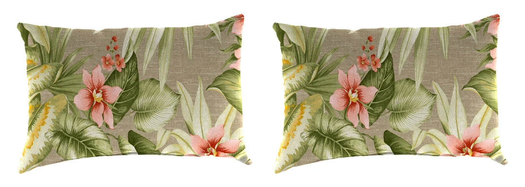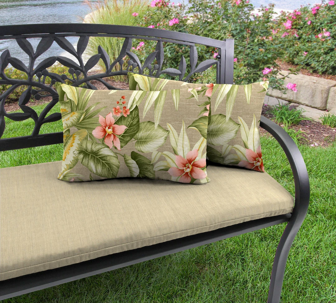 Outdoor Knife Edge Lumbar Throw Pillows; Sold in Sets of 2; UV protection allows pillow to withstand up to 500 hours of direct sunlight; Filled with dense hypoallergenic spun polyester fiber; Weather resistant polyester fabric that is engineered to withstand mold, mildew, & stains; Overall dimensions: 18Wx12Lx5H