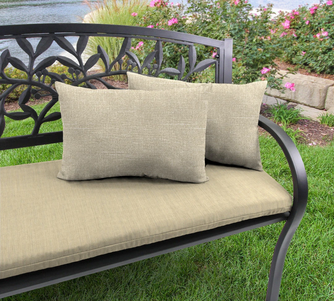 Outdoor Knife Edge Lumbar Throw Pillows; Sold in Sets of 2; UV protection allows pillow to withstand up to 500 hours of direct sunlight; Filled with dense hypoallergenic spun polyester fiber; Weather resistant polyester fabric that is engineered to withstand mold, mildew, & stains; Overall dimensions: 18Wx12Lx5H