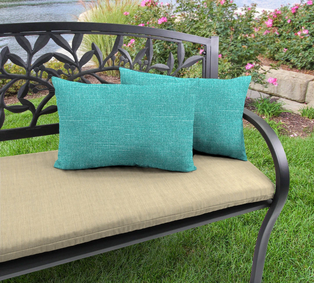 Outdoor Knife Edge Lumbar Throw Pillows; Sold in Sets of 2; UV protection allows pillow to withstand up to 500 hours of direct sunlight; Filled with dense hypoallergenic spun polyester fiber; Weather resistant polyester fabric that is engineered to withstand mold, mildew, & stains; Overall dimensions: 18Wx12Lx5H