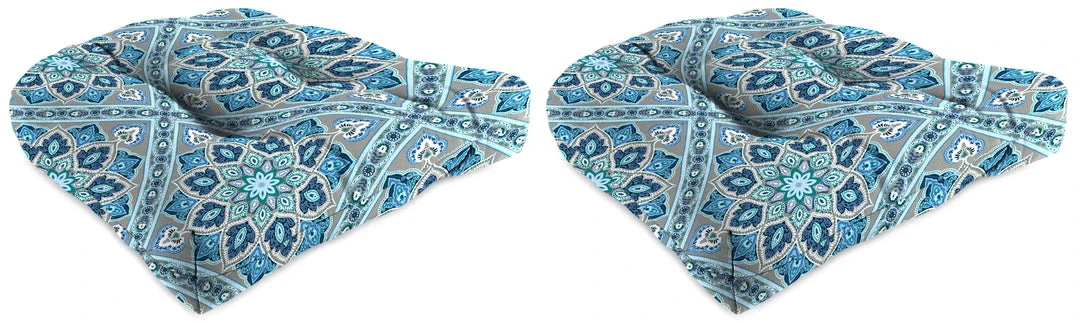 Outdoor Knife Edge Wicker seat cushion; Sold in Set of 2; UV protection allows cushion to withstand up to 500 hours of direct sunlight; Filled with dense hypoallergenic spun polyester fiber; Weather resistant polyester fabric that is engineered to withstand mold, mildew, & stains; Overall dimensions: 18Wx18Lx4H