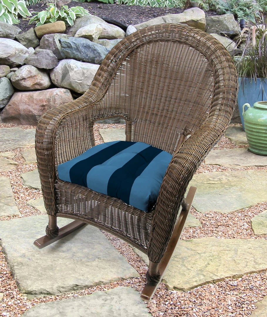 Outdoor Knife Edge Wicker seat cushion; Sold in Set of 2; UV protection allows cushion to withstand up to 500 hours of direct sunlight; Filled with dense hypoallergenic spun polyester fiber; Weather resistant polyester fabric that is engineered to withstand mold, mildew, & stains; Overall dimensions: 18Wx18Lx4H