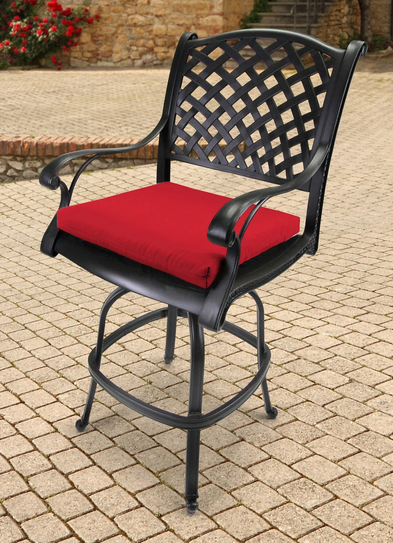 Bring optimal comfort to your patio chairs with the French Edge Seat Cushion from Jordan. Sold in sets of 2, these cushions are made with weather-, water-, fade- and UV-resistant fabric for ultimate durability and long-lasting use. They are stuffed with hypoallergenic polyester fiber fill for an extra cushy and soft experience while relaxing. Ties along the sides add convenience while ensuring the cushions stay in place when you’re sitting down. From elaborate dining spaces to cozy three-season porches, these fiber-filled cushions boosts your space with carefree, laid-back style and total comfort.